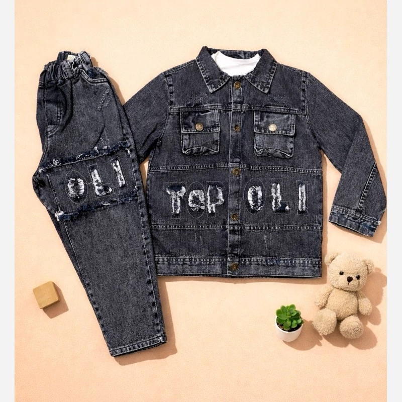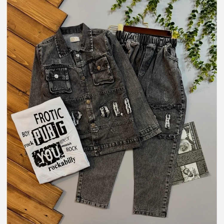تولیدی مستقیم ست سه تیکه کت و شلوار لی گرم بالا بچگانه ست پسرانه دخترانه خواهر برادری اسپرت مجلسی شب عید